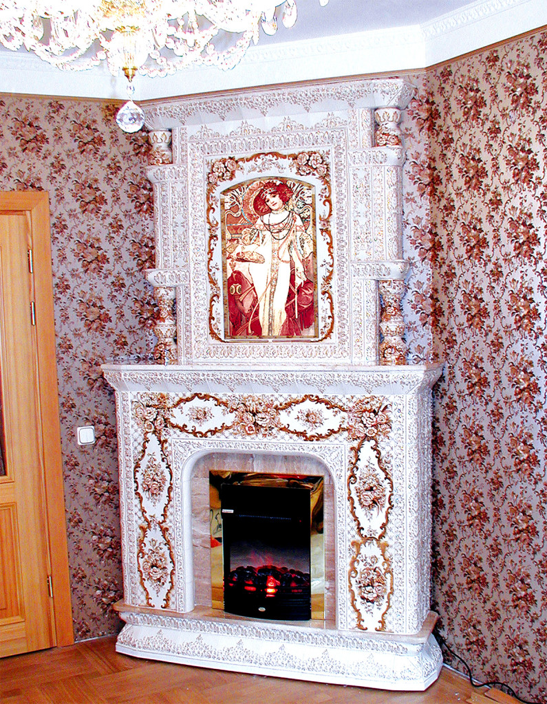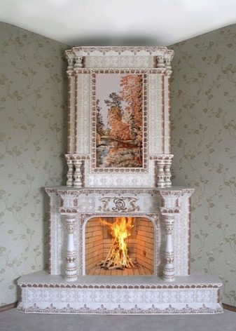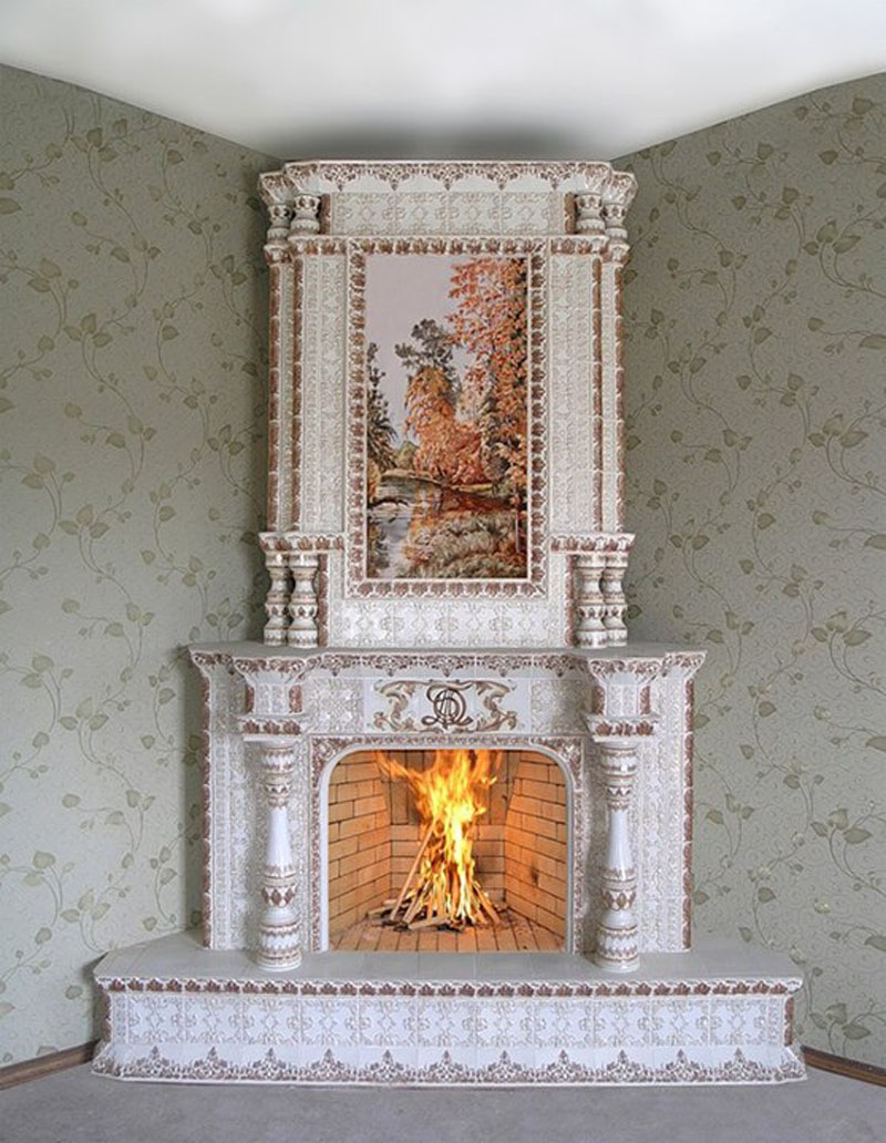 - Corner fireplace saves free space in the room. The portal occupies an empty corner, the chimney is also located in the corner of the room, without occupying the entire wall;