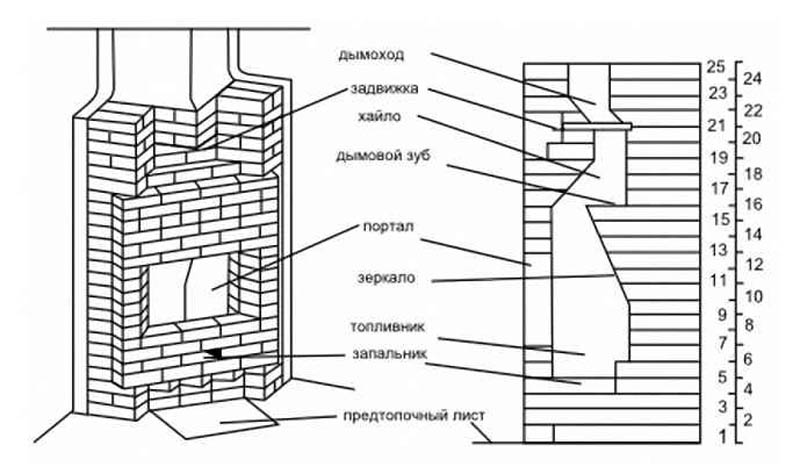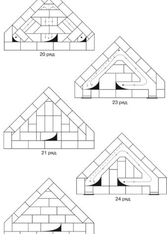 - The mantel is laid out on the 24-25 rows. After that, you can install a furnace grate and build a chimney.