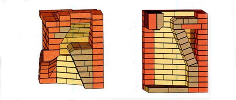 Lateral walls should be laid out on a slope in order to increase the chimney draft.