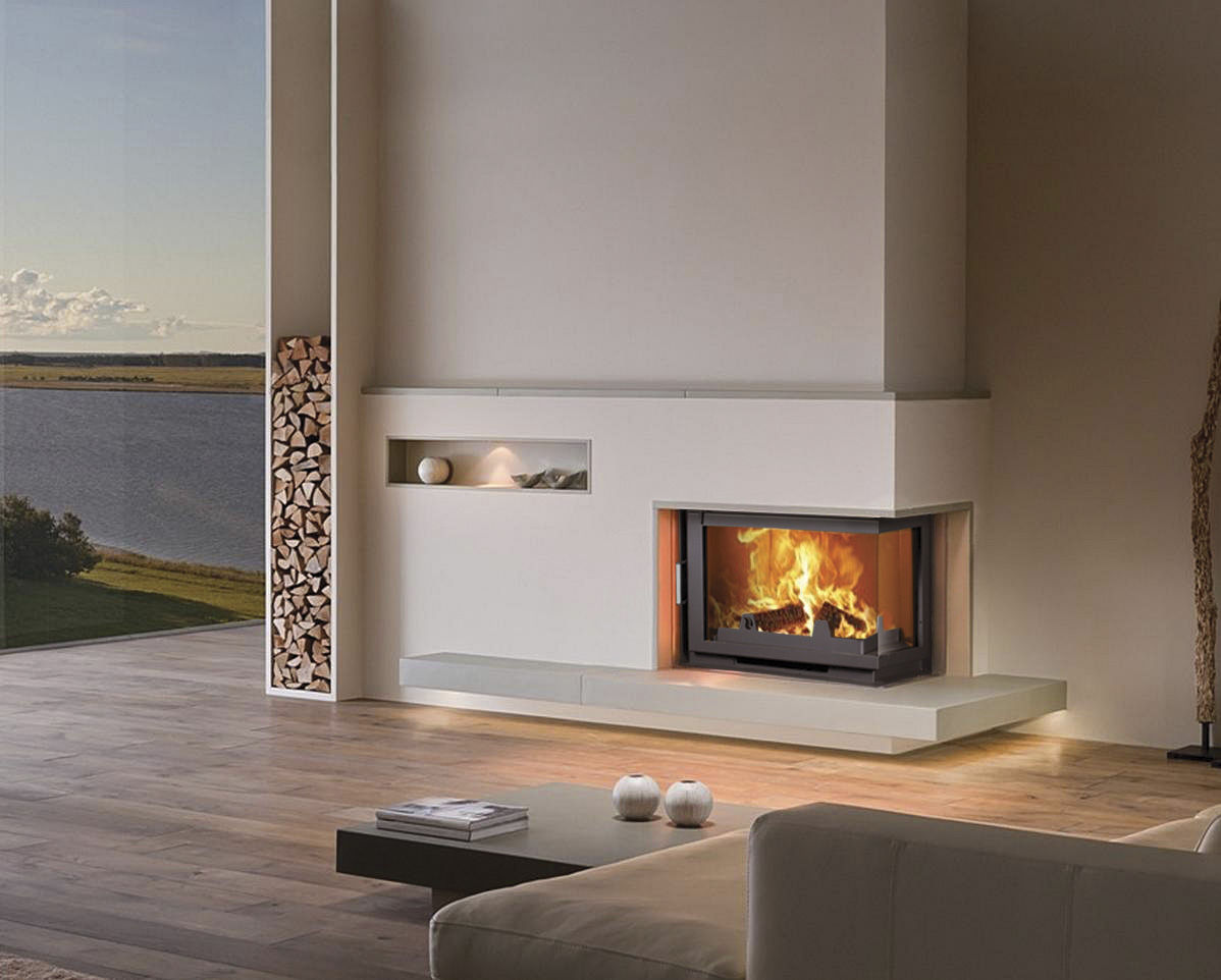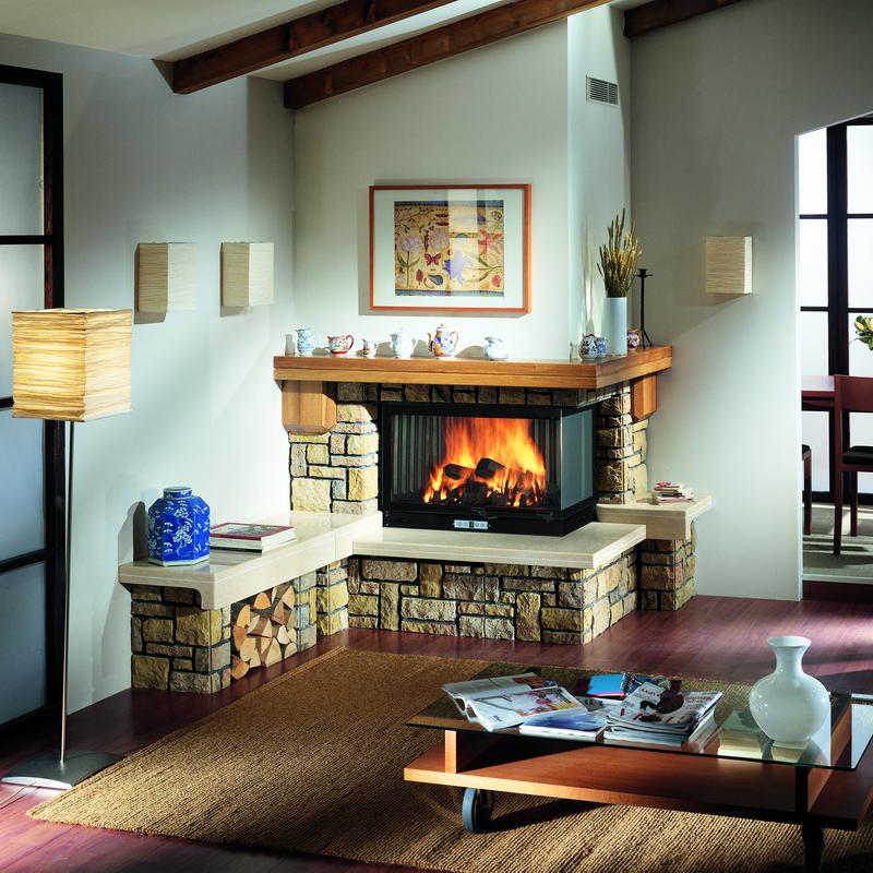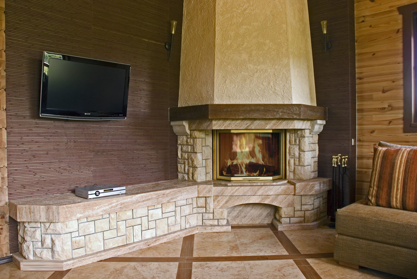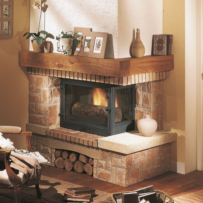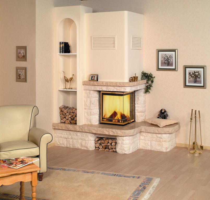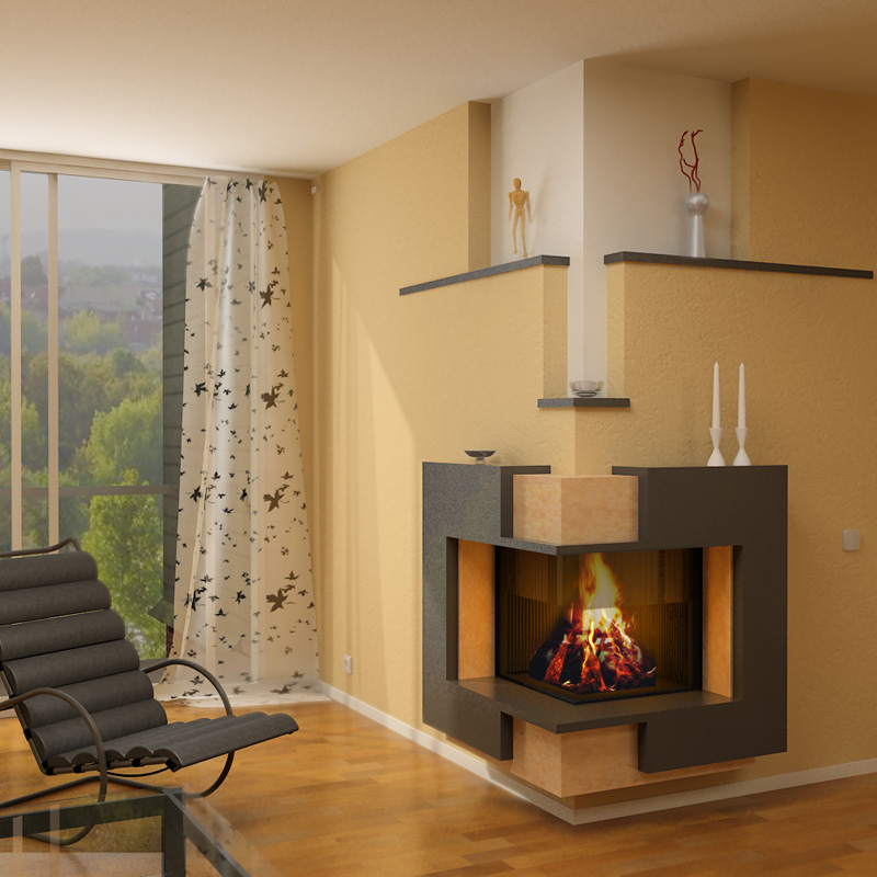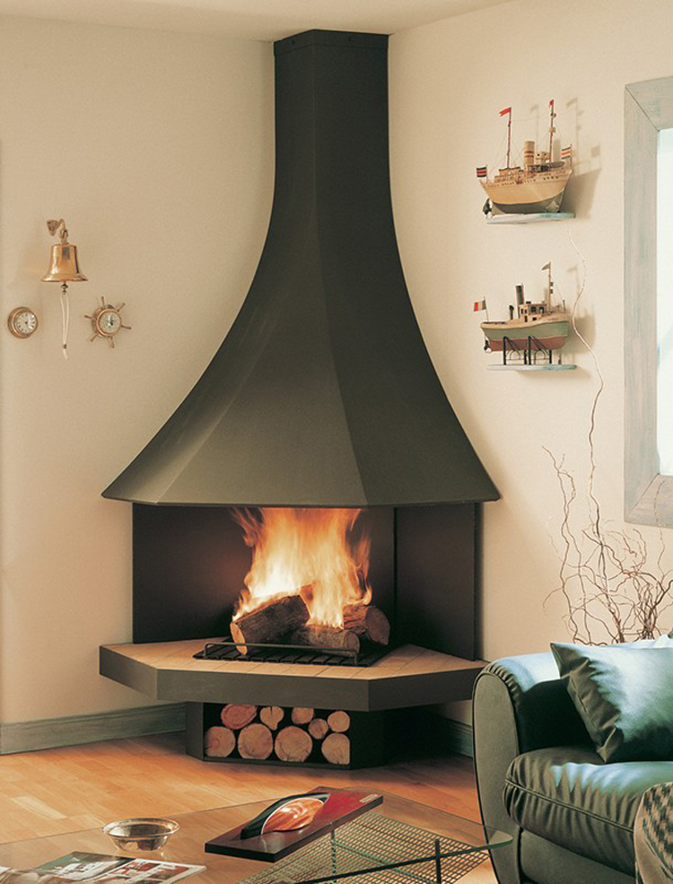 - installation of the corner fireplace can be made after the design of the building. You can install the chimney from the outside of the wall, without interfering with existing structures.
