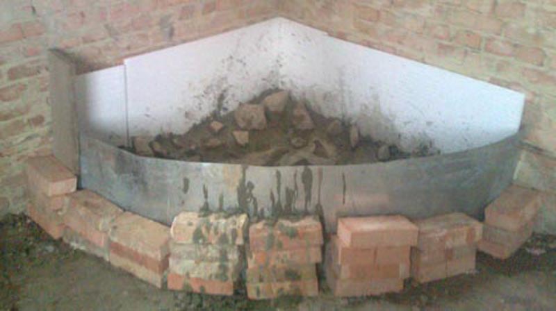 How to make the foundation for a corner fireplace:
