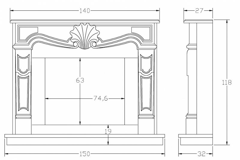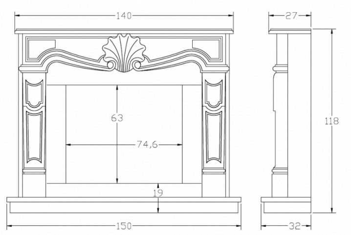 To create a false fireplace, you need to create a sketch in full size, which is then transferred to the material. The figure should contain a detailed description of the details of the fireplace.