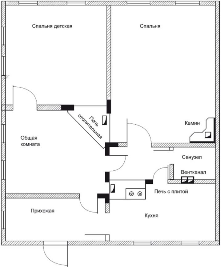 To calculate the size of the fireplace, you need to know the area of the room. After that you need to draw some schemes:
