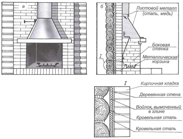 Above the top of the firebox will need to create a special protrusion that will block the ingress of soot from the pipe down. Smoke in the room also will not fall. The use of lining in the walls of the portal will increase heat transfer.