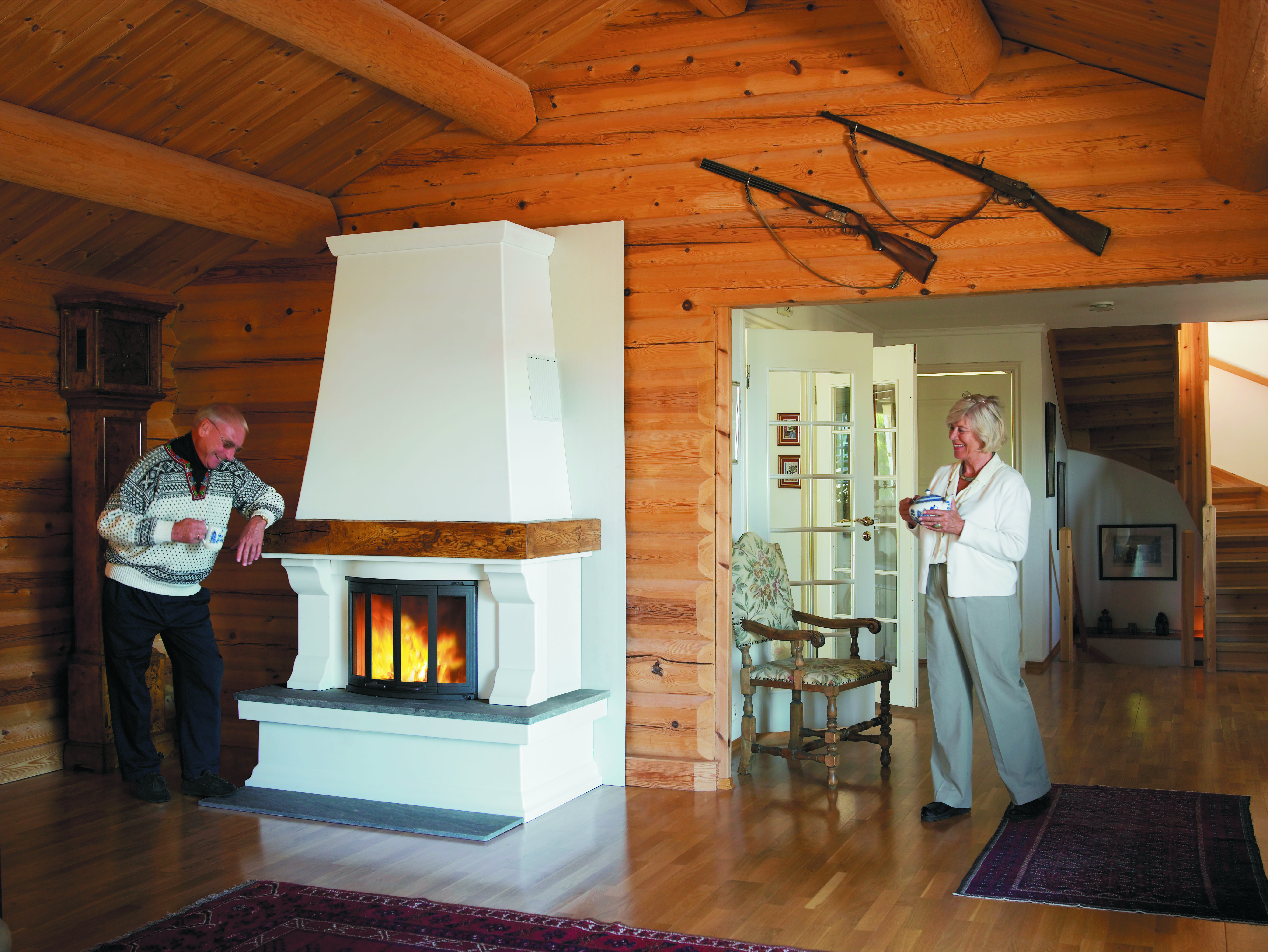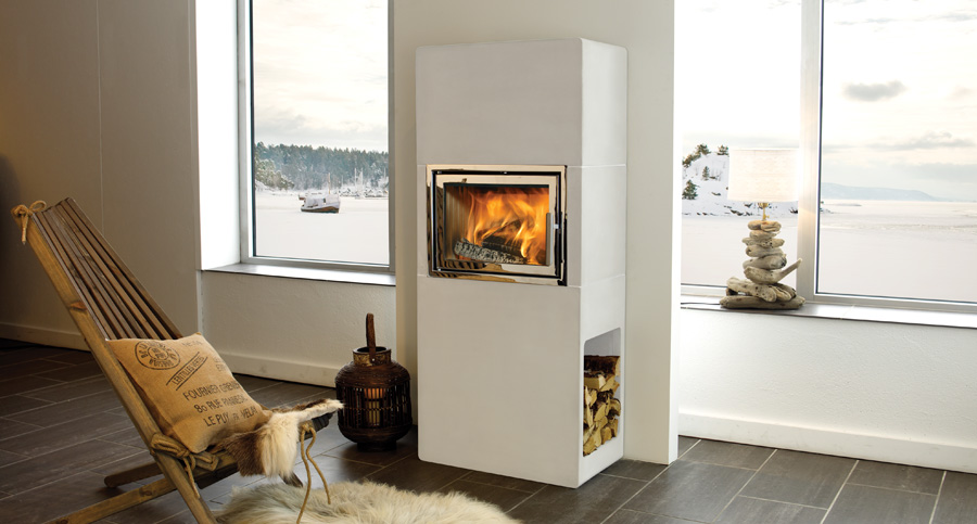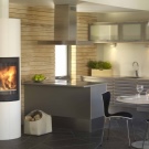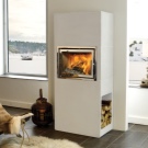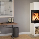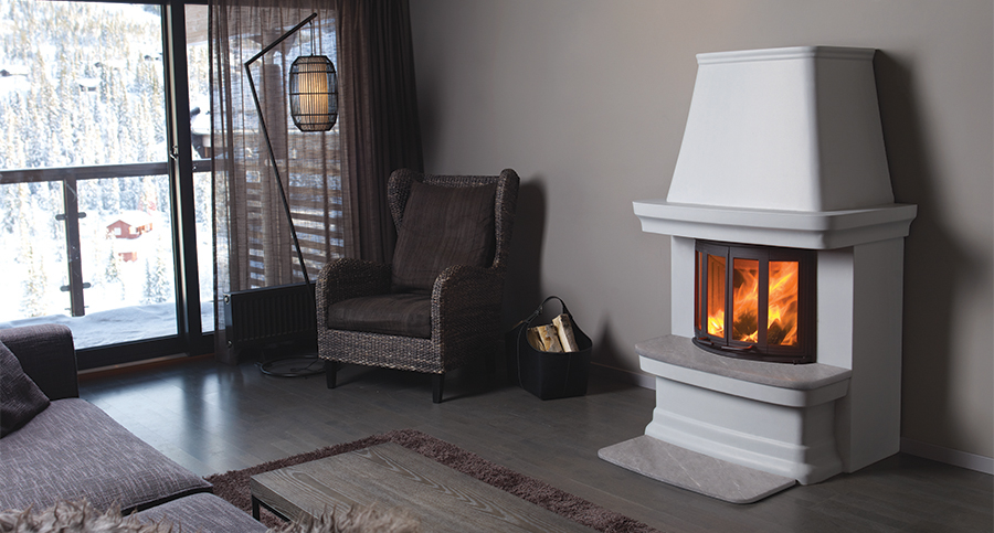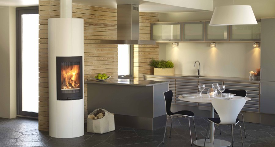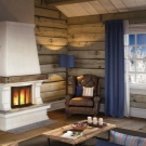 Nordpeis Geilo is a round fireplace with folding doors that can be a highlight of any interior. For the manufacture of cladding used modern material - composite. This material is characterized by a clear separation of boundaries between the two types of finishes. The cast-iron firebox works on wood and can keep warm for a long time.