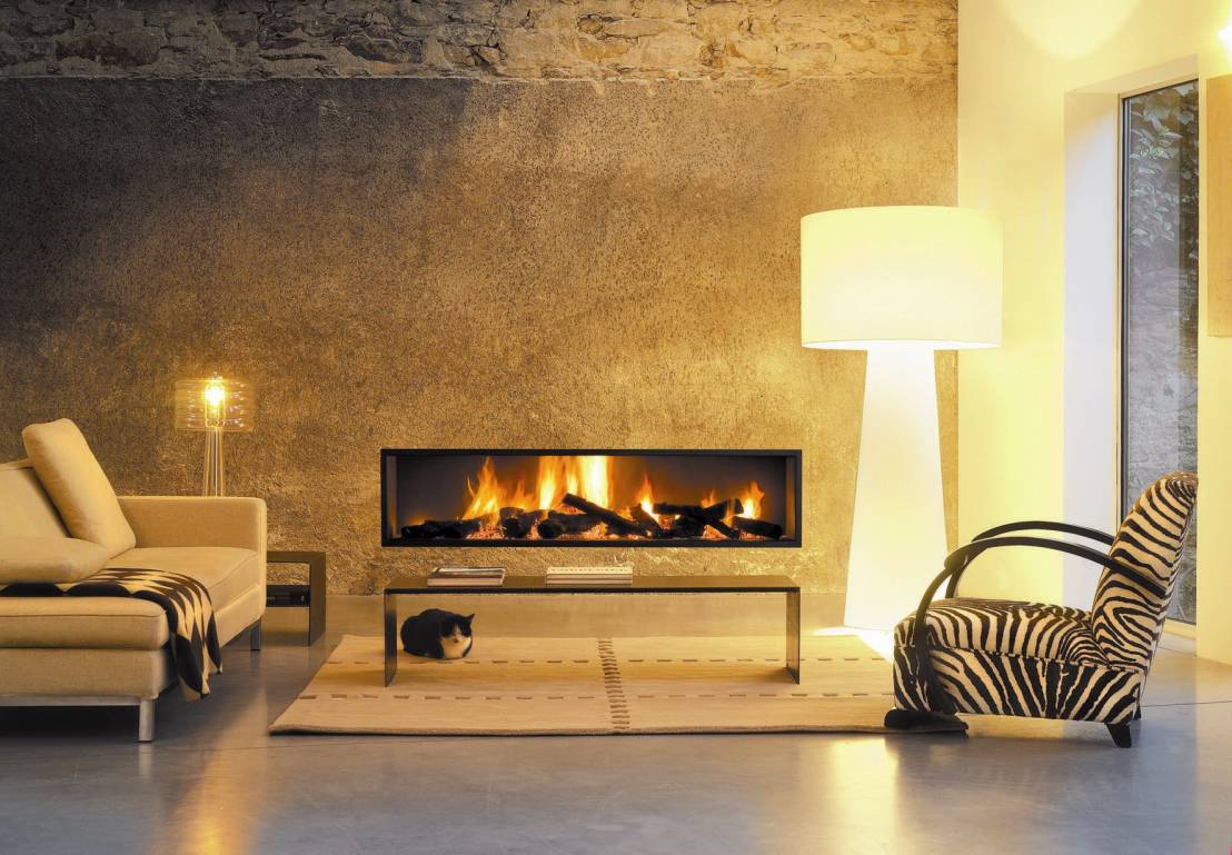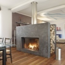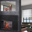 Among the most popular companies producing fireplaces, the French trademark Focus is very well known. Among the most original models, there is a fireplace with sliding doors made of bronze. Their texture is similar to magma hardened after a volcanic eruption.