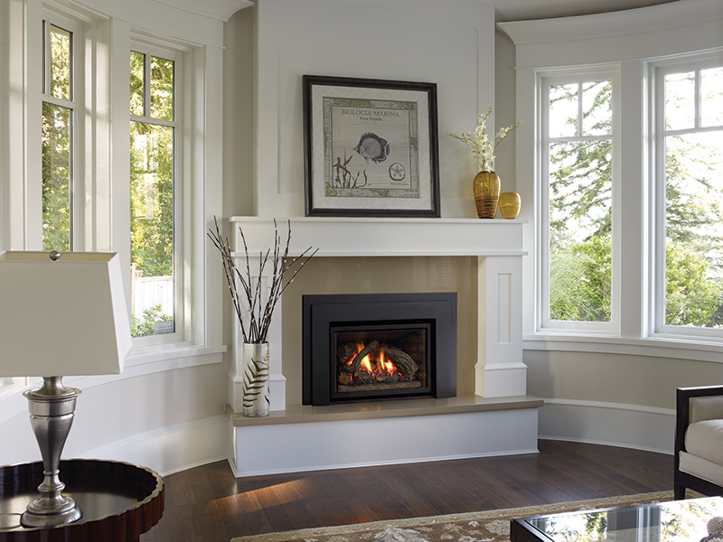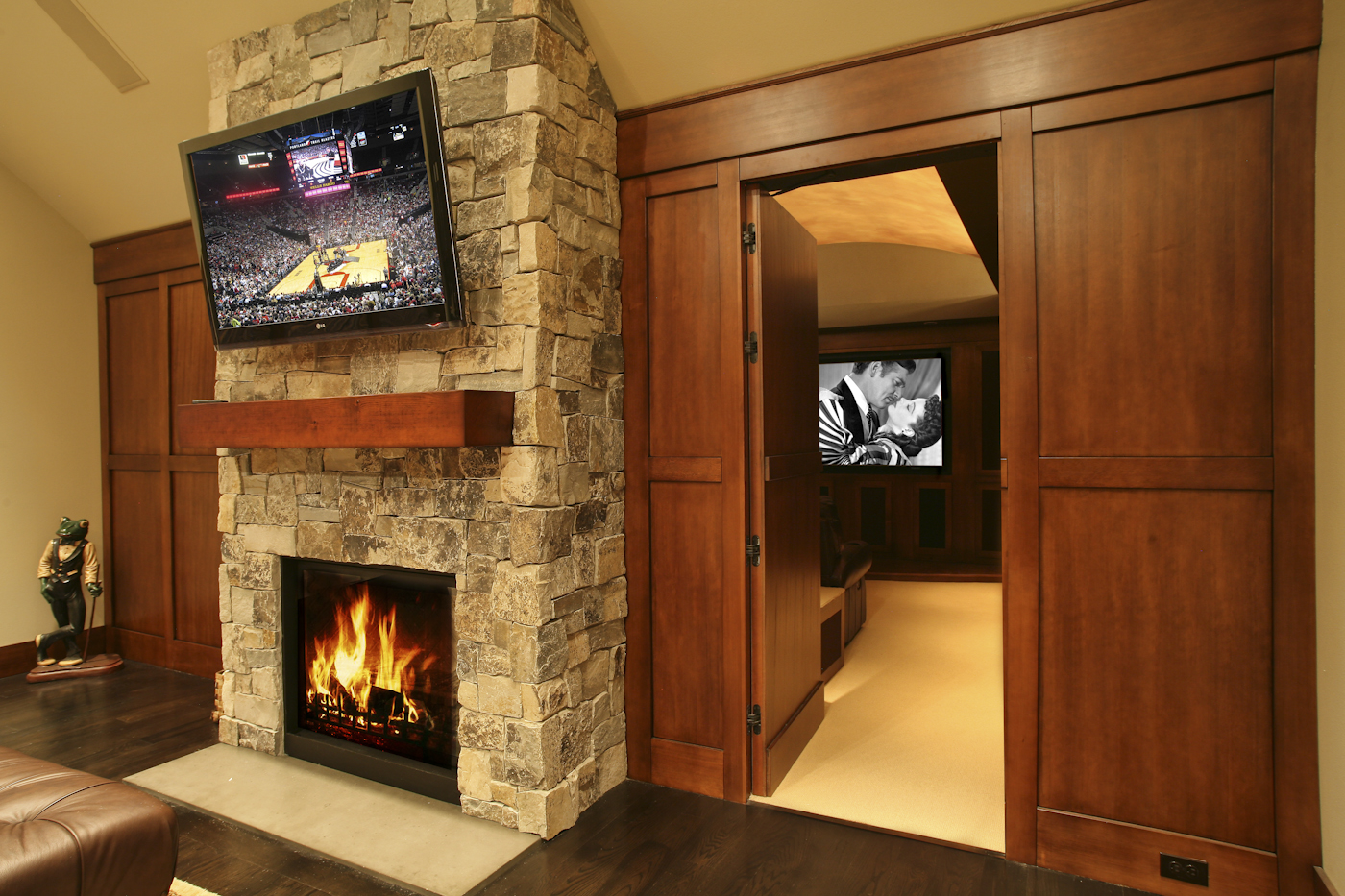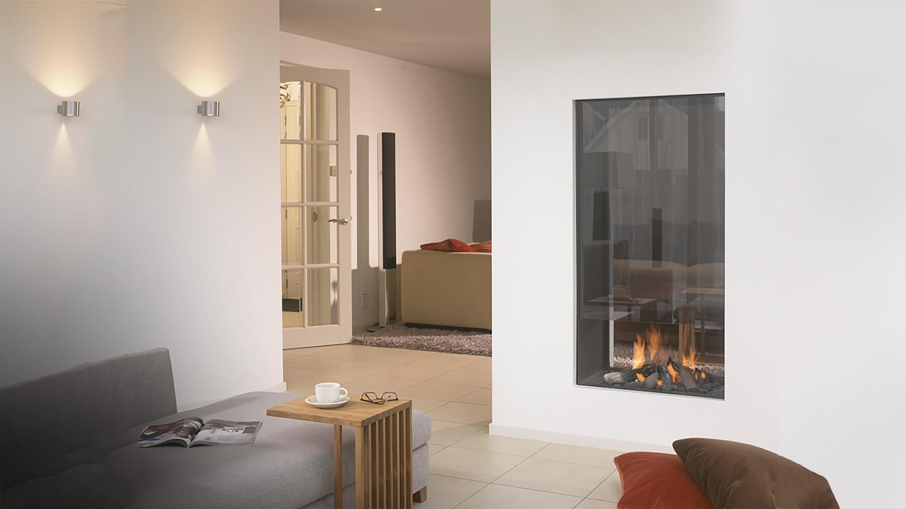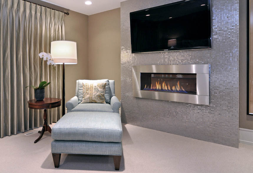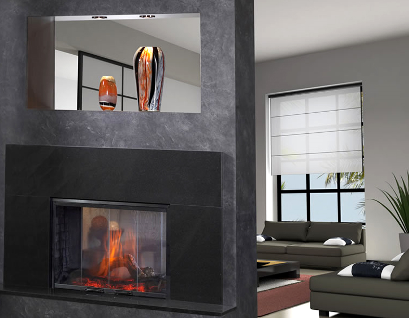If your fireplace has a three-sided view, you can hang mirrors on the sides around it so that the flames are reflected in them, creating more light in the room.