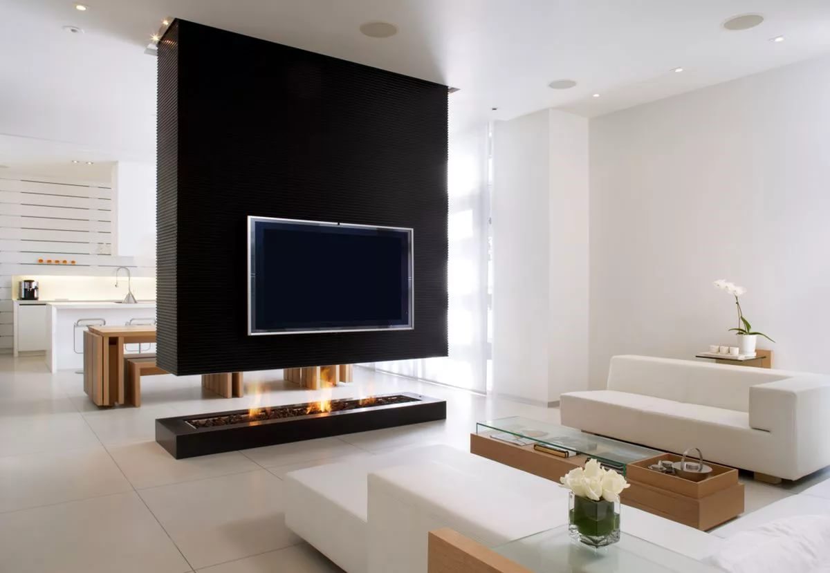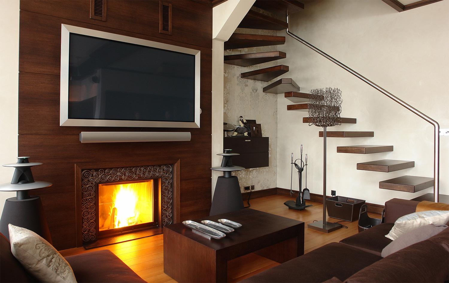 After all the installation work on the installation of fireplaces is done, the question arises of how to properly trim the space around the fireplace and the appliance itself so that it forms a single whole with the overall decor of the room. If there is a large space between the ceiling and the fireplace, you can fill it up by hanging a TV panel there.