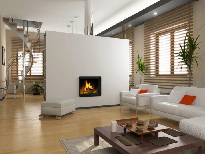 Modern models of fireplaces are constructed using high technology. Among others, it is possible to note designs with a hidden chimney. The horizontal box can be hidden under the floor, or embedded in it. There are also almost fabulous fireplaces, reminiscent of a children's fairy tale about Buratino - with a fake firebox. In the very hearth of the built-in TV, which broadcasts the recording of the flame.