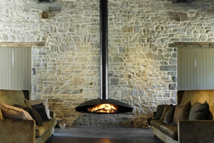Fireplaces look very original, creating the effect of weightlessness, as if floating in the air. Great interest among customers with increased requirements is caused by models of suspended fireplaces, as well as rotating designs and other design ideas.