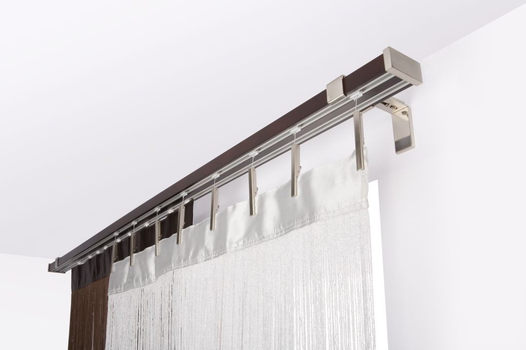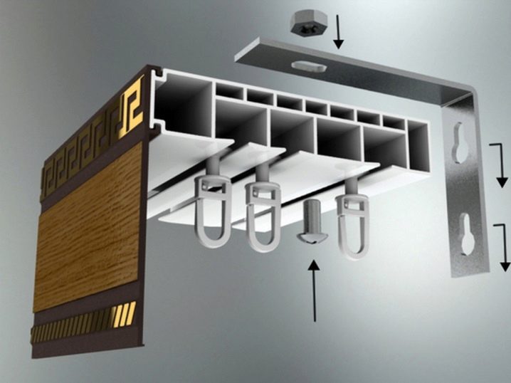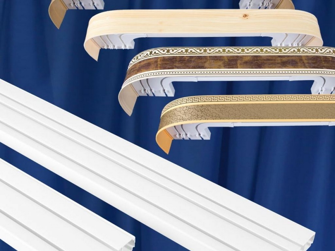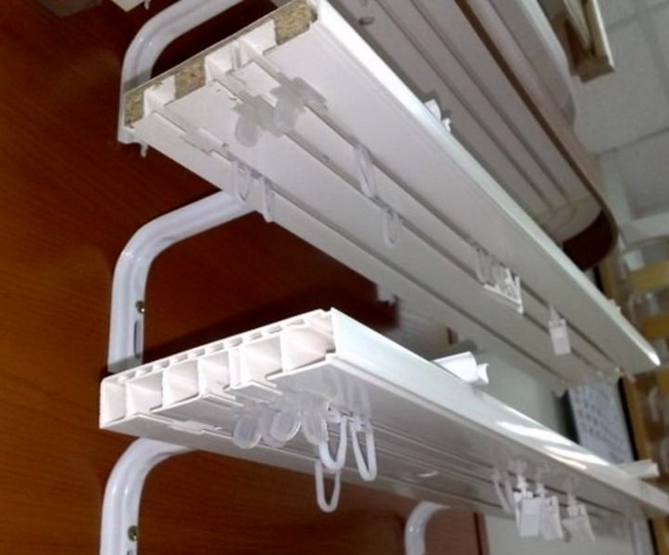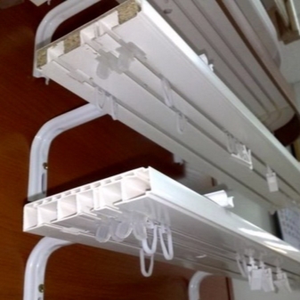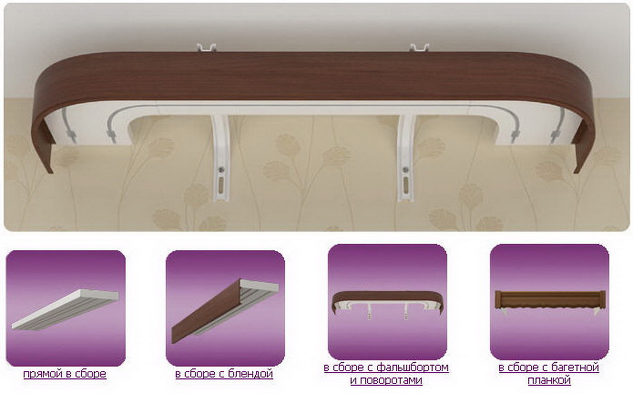 By design, you can consider the profile cornice, which is a profile, mainly made of aluminum or plastic.It made special tracks, which move the hooks. It is a simple and reliable system, suitable for composition with any number of rows. It can be used both for the wall and for the ceiling. Another profile model called rail or tire - on the principle of movement of the mounting hooks.
