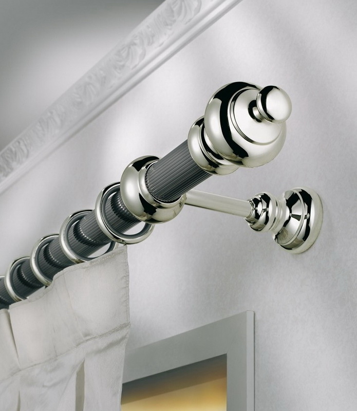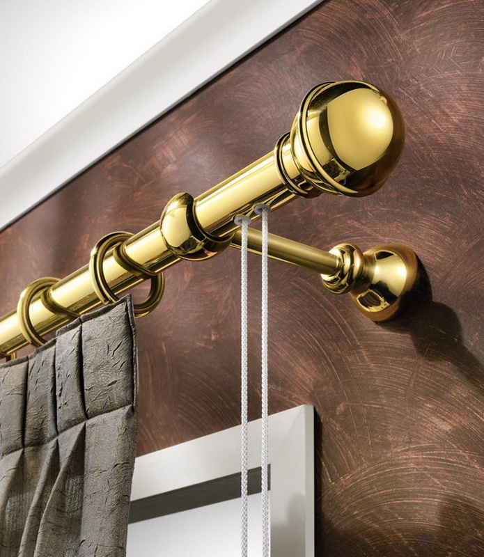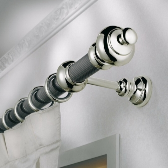 With luxurious furnishings, it is preferable to give preference to massive metal rods, on which massive curtains or multi-layer compositions will be securely fastened.