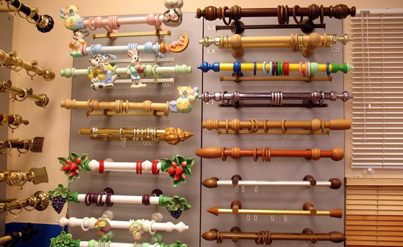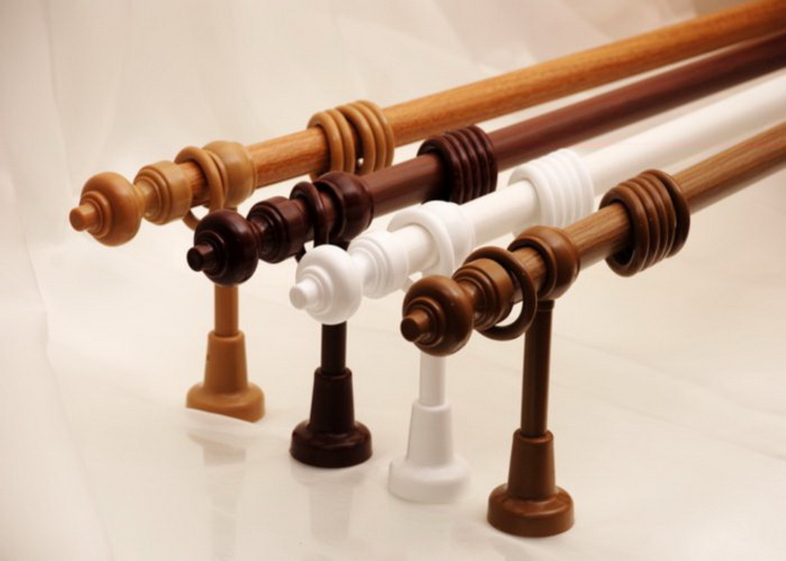 In contrast to the styles and design moves, there are only three main materials for making wall curtain rods.This is wood, plastic, metal, from which it is possible to separately distinguish aluminum as the most popular.