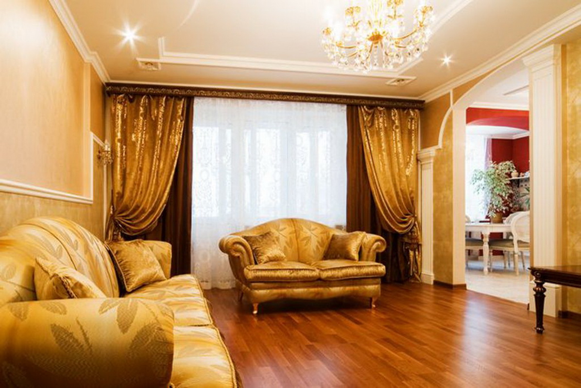 In classical design, greater preference is given to wooden and metal cornices. The tree gives a calm warm tone and pleases the eye with natural colors. Metal is universal, and when decorated with forged ornaments will be a great complement to the decor.For modern styles like minimalism, profile or string variations will do. Everything is as simple as possible, practical, without bright or artsy solutions.