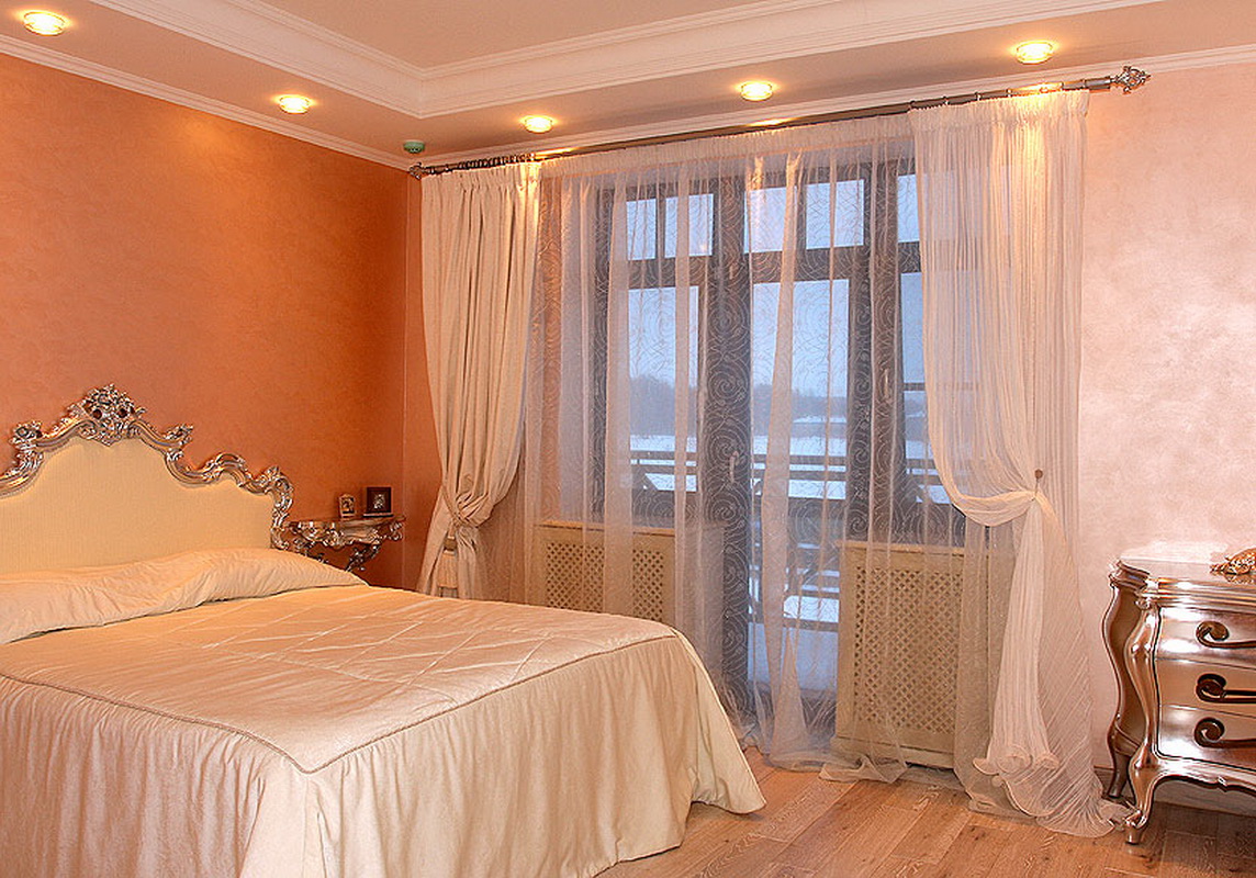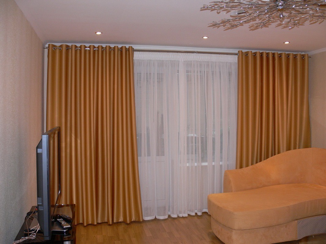 A composition for the entire width of the wall is needed in the living room or bedroom, which is often 3 m. At such a length, two attachment points will not be enough, so a third one is added for reliability - in the center. And in the case of long panoramic windows that can be wider than 6 meters, not every material or type of attachment will do. The sliding mechanism on the eaves of such length is simply necessary, as constantly opening and closing the curtains manually will be quite tiring.
