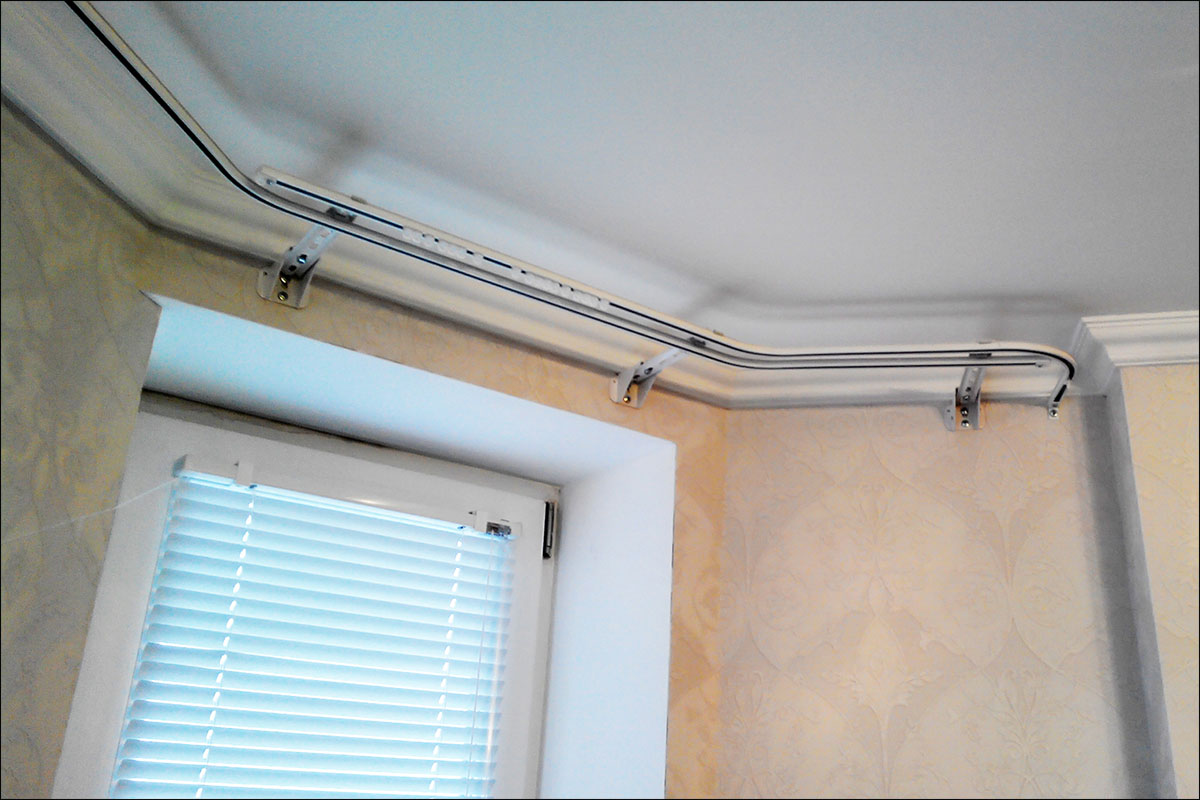 For non-standard windows fit some of these types, but in a flexible version. Similar curtain rods can be made to order and for a specific opening. A good solution here will be the profile option. Today, manual or automatic mechanisms that push the curtains are often used. Installing such curtain rods costs money and cannot do without professionals. Another important element can be called the side brackets, on which the cornice is held. They can be both nondescript, functional device, and part of the decor.