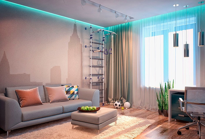 - practicality. Such anchoring is appropriate in rooms with low ceilings, thus it is possible to organize the space by visually increasing its height and volume;