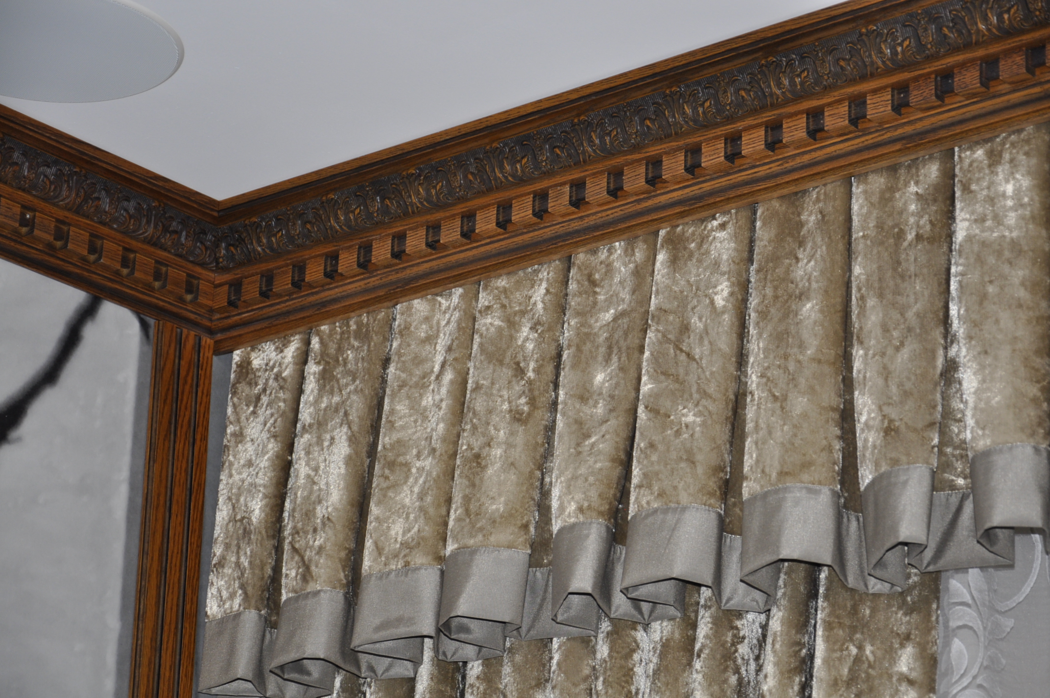 Framing fixtures for hanging curtains are also hidden designs. Fasteners and other elements for curtains hide behind linings, which are visually similar to the baseboard or baguette. They have the most different forms and are made of various materials.