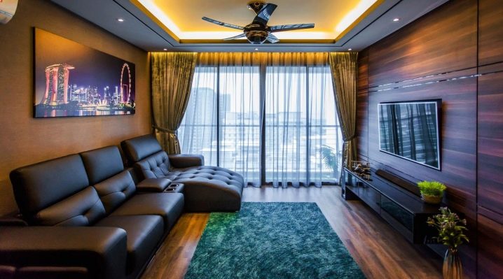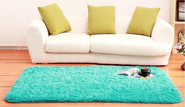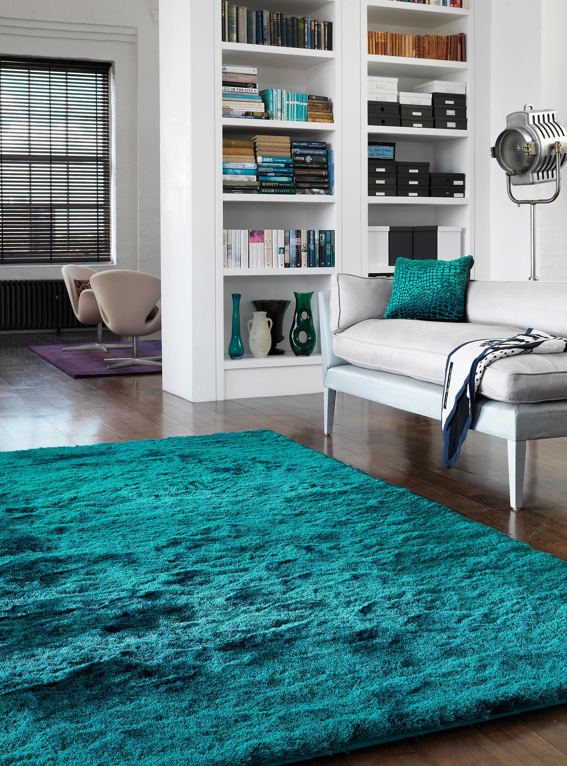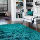 Looks great carpet of this color in a room with chocolate or brown colors. Many designers have long loved this color combination.Bright turquoise carpet of large size, leather brown sofa and honey shades of furniture will create a stylish and concise living room design.