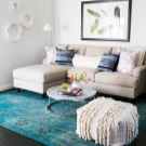 Turquoise color can be found in the interior more often. Due to the aqua shade, the room will always look stylish and fresh. One of the details of the interior in turquoise can be a carpet. Below are considered successful color combinations and options in the interior.