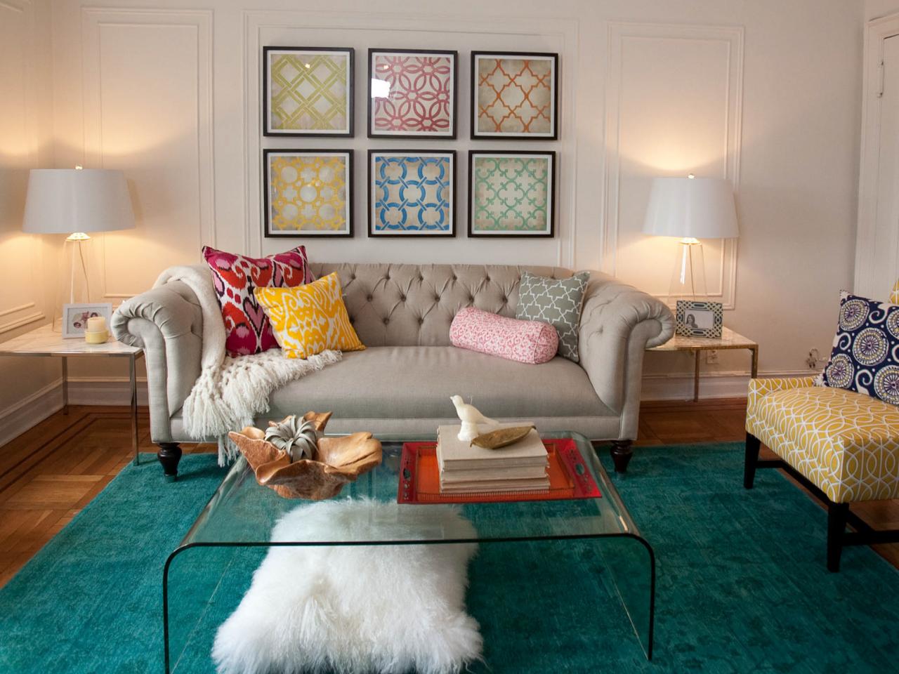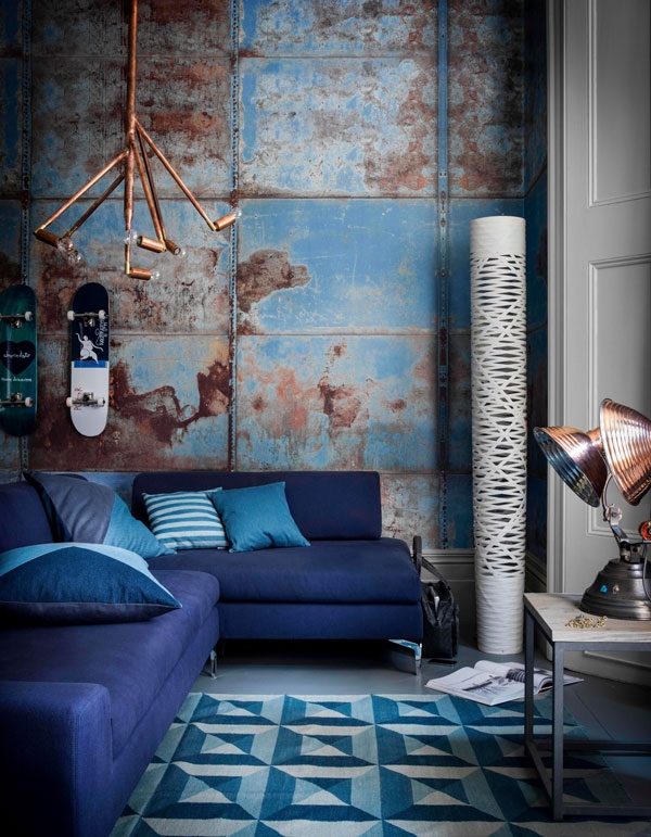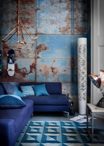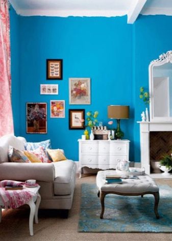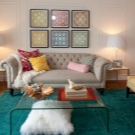 Now the effect of antiquity is very common. Turquoise may look a little faded. Add to the interior a wooden frame, an interesting table or furniture in vintage style. Do not forget about the furniture. If the sofa is bright, then you should choose a carpet product to tone lighter.