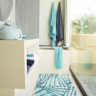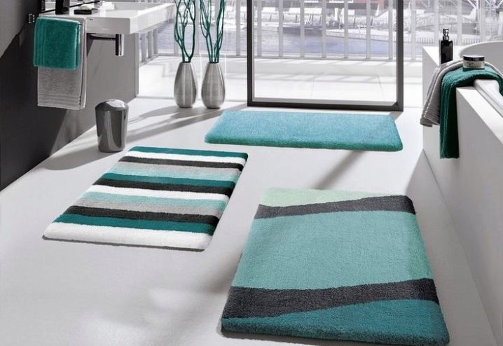 In the bathroom you can experiment not only with the color of the carpet, but also with the form. In the store you can easily find the shape of a flower, a seashell and many other options.