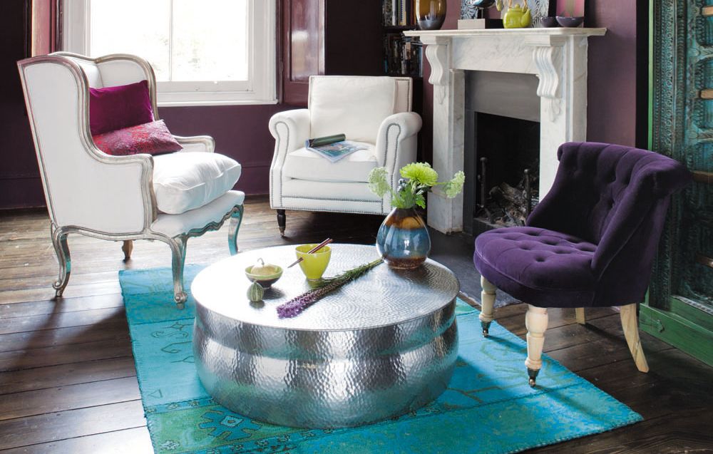 Turquoise-purple carpet will look good in a room with purple flowers or other similar shades. If your room is completely made in purple tones, you can transform it by adding a turquoise carpet. In this case, choose a not very saturated color, closer to the bright sea shade, otherwise the combination will turn out too "cold."