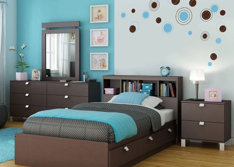 Turquoise-brown combination suitable for bedroom design. For such a room, you can choose a pale carpet shade. Consider cotton lint-free carpets or jute products. Turquoise and chocolate will create an atmosphere of calm and comfort. Add dark wood bedside tables, thick cotton curtains or a turquoise bean bag to the bedroom.