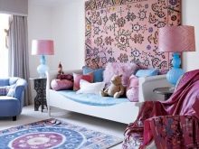 Children's room can be supplemented with a soft wall carpet of green, yellow, orange, blue, purple. Try to avoid the predominance of shades of red and blue colors in children'sThis may not in the best way affect the general condition of children.
