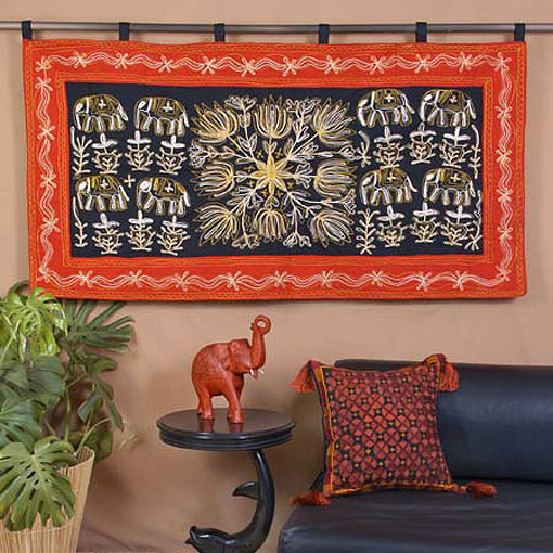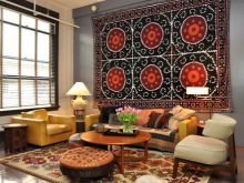 - Made of silk with an embroidered pattern on it will be the perfect decoration for a chic interior, and decorated in a frame or baguette will be able to compete with real paintings.
