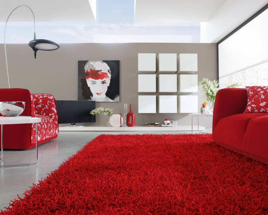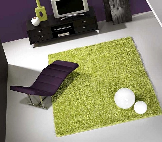 - For the bedroom the right decision would be to buy carpets of the “sheg” type. Their width is large, reaching 250 cm. In addition, such products are pleasant to the touch, their pile is soft and high. The only drawback in these products is considered to be rapid contamination and low wear resistance. But the bedroom is not a lively place in the house, so the probability of staining the carpet in it is minimal. In the interior of the bedroom often use plain carpets.