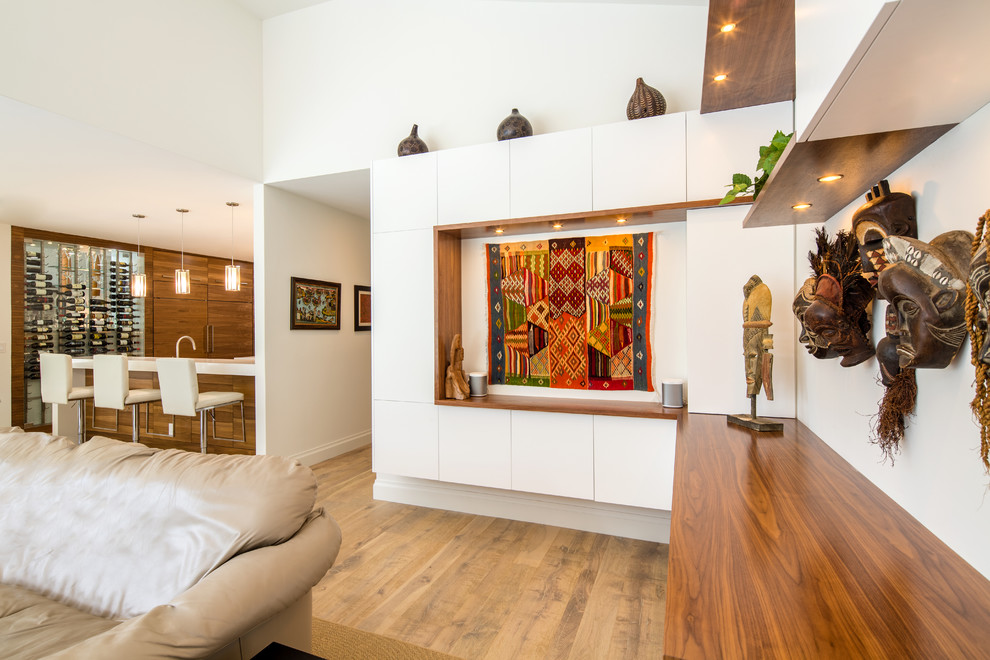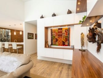 Modern style the design of the apartment implies the presence of both a small tapestry on the wall and the finishing of the whole wall with carpets In the latter version, the emphasis in the room is placed on the wall where you can create a small hookah corner or reading zone. The coating can be either with an animal, plant print, or with an art object. The modern design of the apartment in the loft style implies the presence of a single-colored or patterned wall covering. Such an object performs not only a decorative function, but can also serves as insulation for noise and cold.Fabric carpet (tapestry) harmoniously looks on the background of brickwork and modern equipment, furniture.