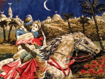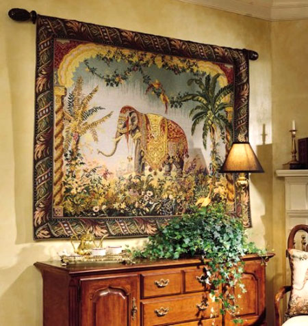 Wall Carpets - It is an integral part of the eastern interior. They give the room a unique combination of comfort and luxury. For the East characteristic wall coverings with ornaments, curls, lines, as well as with nature and animals. This item in combination with floor jugs, vases, wall dishes and plates, musical instruments and hookah, bed linen and ornamental floor covering gives the interior a genuine oriental flavor.