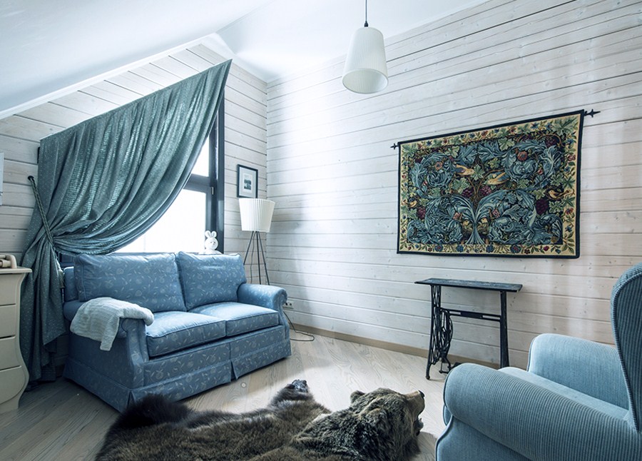 Scandinavian style where white is the dominant color, a tapestry with a bright base or details will look good. The plot of the picture should be distracted. The image of animals or the starry sky is not suitable for this style.