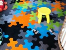 Carpet puzzle is now mainly used in the design of children's rooms. It is practical, durable and has an attractive appearance. Children while playing on this surface are well protected from injury. If the baby does not know how to walk yet, this cover will be used for crawling and will fully protect against damage.