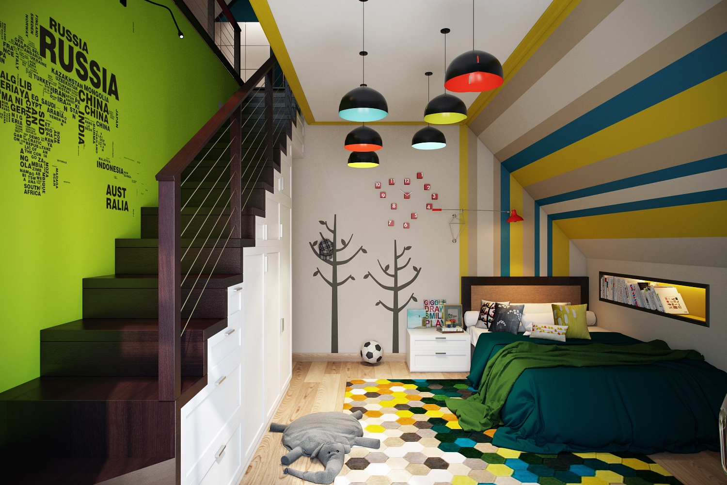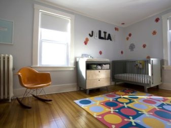 It is not necessary to lay the carpet on the floor, you can creatively use several details to decorate the walls in the nursery.