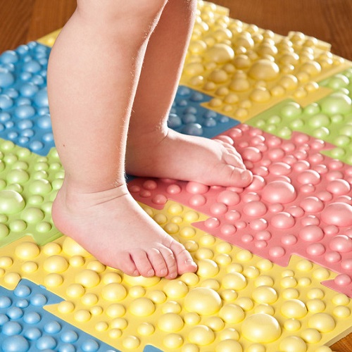 The covering of puzzles can be not only flat, there are modules with volumetric expressions that have a massage effect. Walking barefoot on such a surface improves blood circulation in the legs and even helps prevent flat feet.