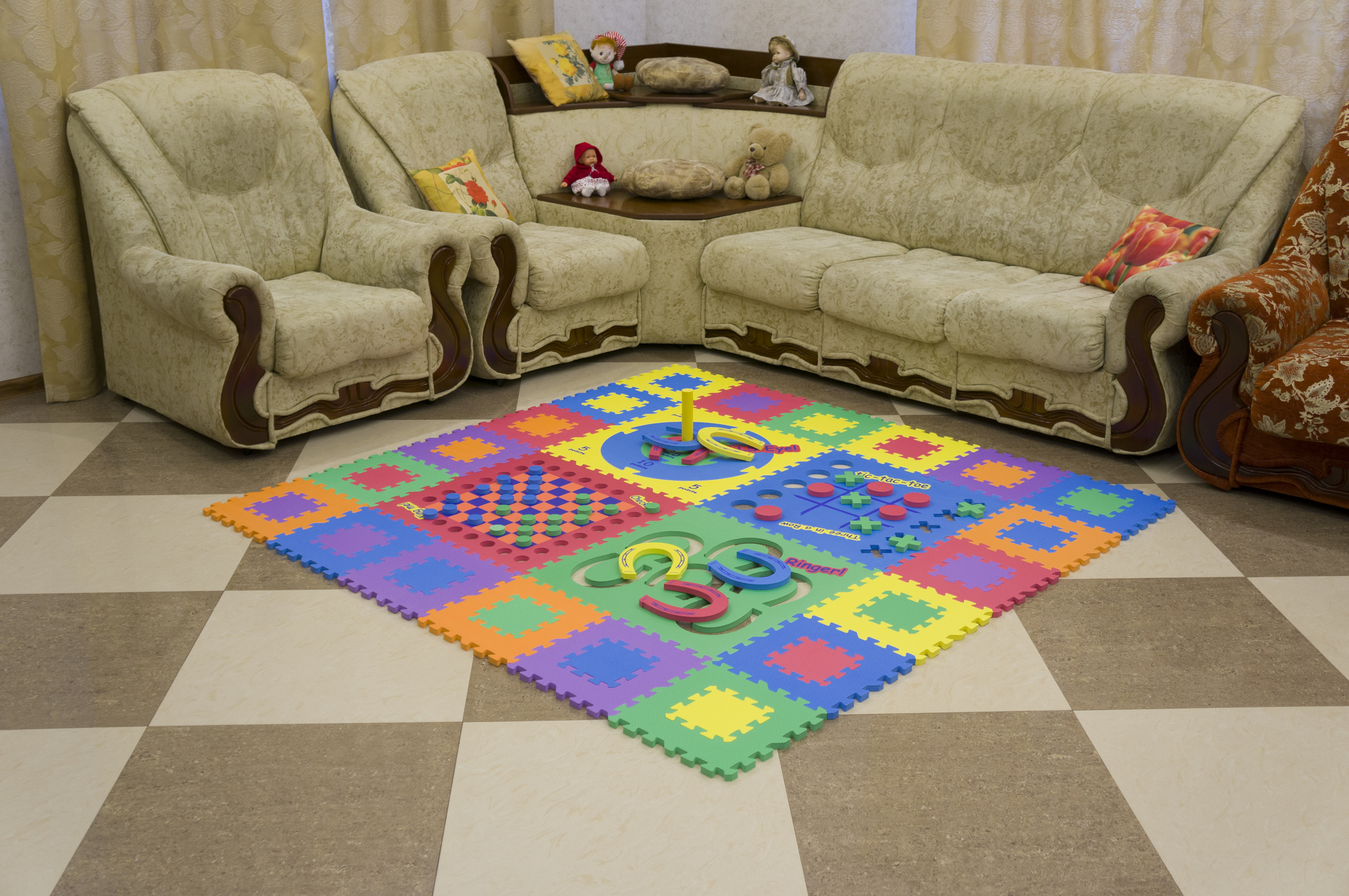 - Soundproofing. Elements have sound insulation properties. Your little brigand can jump, knock on the floor, cover will absorb and absorb all sounds, and neighbors whose apartment is under yours will not come running to complain about the noise. You will not disturb them in any way, of course, if you have these neighbors.