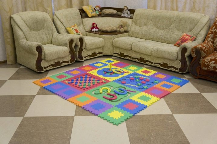 Puzzle carpets are ideal for use in the children's room. Children of any age enjoy playing on this surface. Even a one-year-old baby, beginning to crawl or taking the first step, is not afraid to fall on such a soft floor.