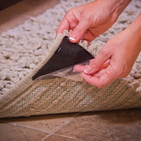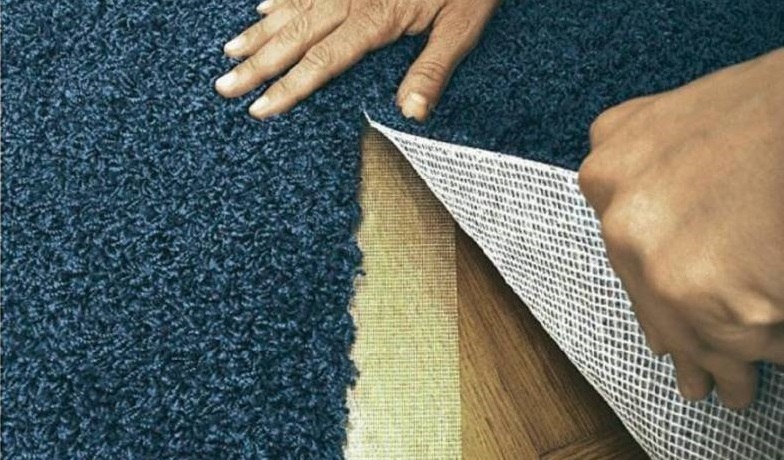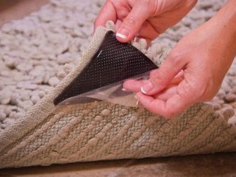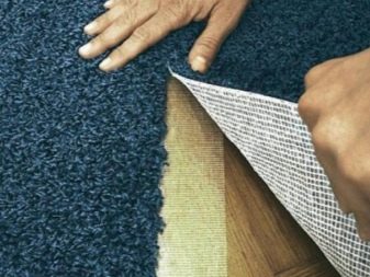 In that case, if you want to lay the carpet on a tile floor, you need to reduce the slats, making them pieces of about 10 centimeters or more. Ideally, they should be equal to the width of the floor tile. Grips need to be attached to the floor, and for this you need contact adhesive or "Moment". Remember that the surface must be well polished, otherwise the grippers will not be able to properly fix on it. Often, a special lining is needed under the carpet - its area should slightly exceed the area of the room. The edges of this tamping are attached with double-sided tape to the inside of the grip, after which they are cut with a special knife for carving linoleum.