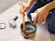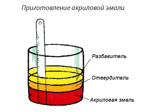 The solvent or diluent should be added to the composition gradually in small portions. While the mixture is constantly stirred until it is time until it becomes homogeneous. It is important to prevent the composition from splitting into separate layers or the folding of paint. You should not neglect the thoroughness of mixing: evenness and thickness of the applied layer depends on it.