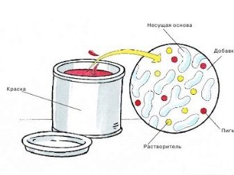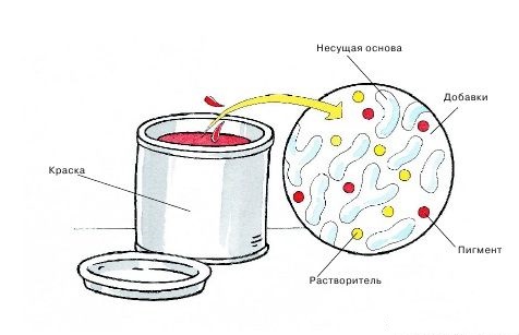 - A mandatory component is a pigment, which is an insoluble powder. It gives color to the composition, it is synthetic and natural in origin.Light resistance and opacity of the paint depend on the quality of the pigment.