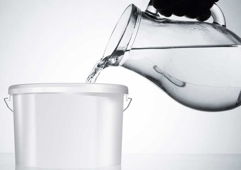 To determine the correct proportion you will need a clean bottle and a pipette.The technology "by eye" is unacceptable: after drying the surface, it will be possible to observe a discrepancy of shades. The selected container for measuring the amount of water should make it possible to determine the exact amount of material taken.