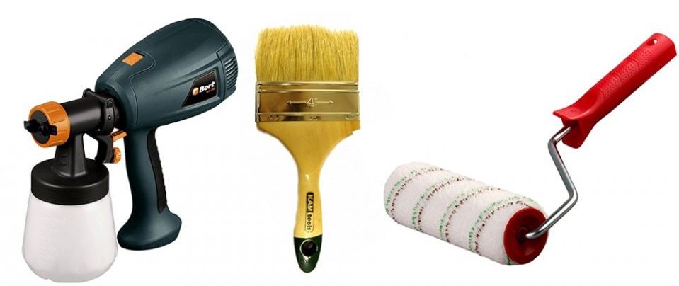 - The choice of tool depends on the area to be painted. For small surfaces it is worth stopping the choice on a flat brush, for a large area it is recommended to use a paint roller or spray gun.