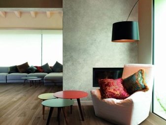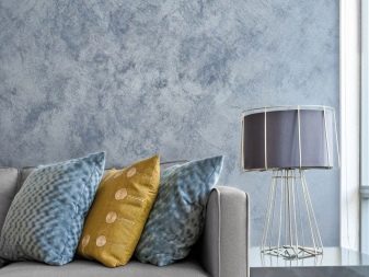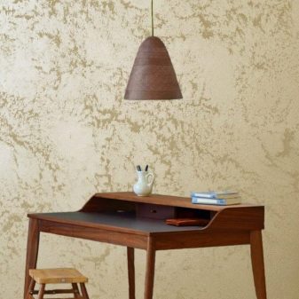 Such coatings can be chosen for every taste and color. There is the ability to mix different colors, allowing you to get an individual color of the surface. Also among the huge range there are unusual colors with splashes. The walls, which are covered with textured products, resemble Venetian plaster. Silver, bronze and gold colors imitate metal.