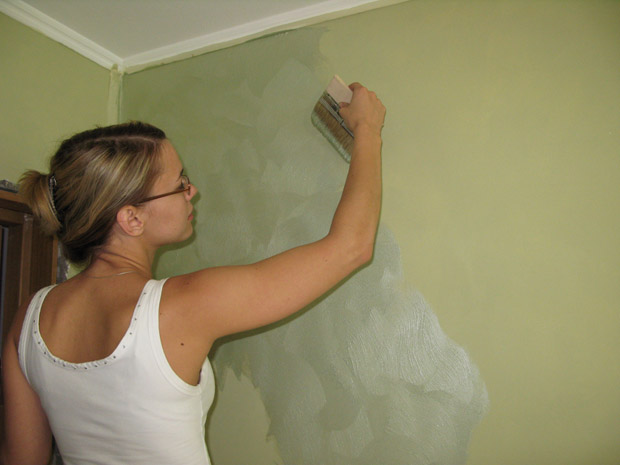 - the initial layer of decorative paint is applied by roller.Method of application and manner depend on the desires of the owner and design ideas. In this case, the design of the coating is created;