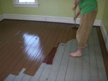 After stripping the wooden base from the old finishing layer and removing the dirt, a small layer of paint is applied. After that, you need to wait for the complete drying of the coating. Then the surface is polished, and a second layer of the mixture is applied to it, which, after drying, also needs to be sanded.