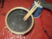 - Brush. This method of applying the coloring composition is the most popular. Thus it is possible to trim the bases of small size and simple configuration. As a rule, for a greater protective effect, it is recommended to apply 2-3 (maximum 4) layers of paint. Special attention should be paid to edges and corners. If you plan to carry out more serious decorative work, then you should stock up on a high-quality brush with natural bristles.