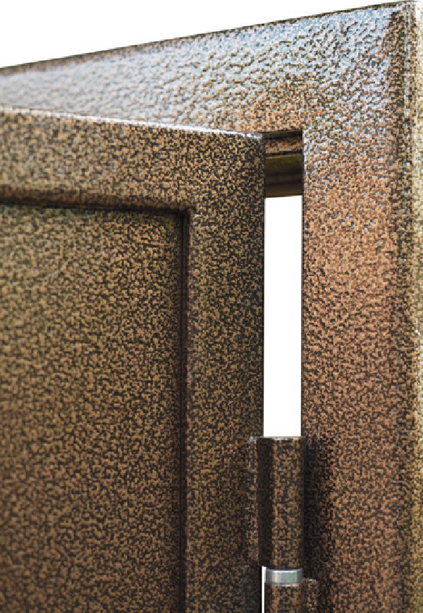 - Hammer paint can be safely used in the finishing of such constructions as gates, fences, any fences, doors and gates. Constantly being on the street, these details will not lose their color and saturation.