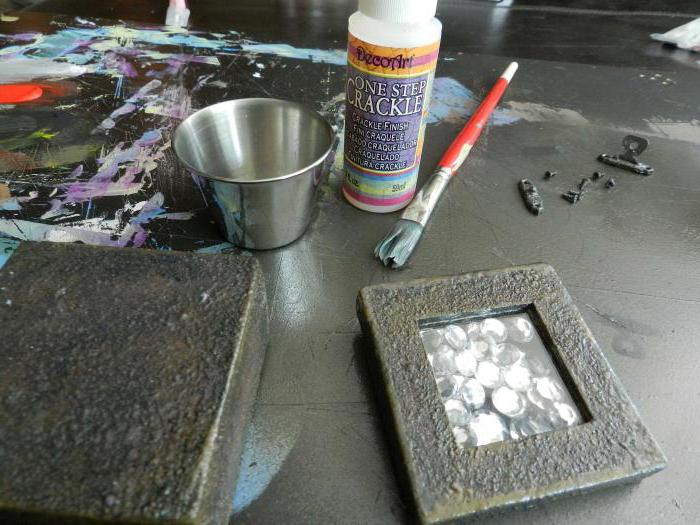 If you decide to decorate an object with such a dye composition, then you It should be borne in mind that it is better placed on the base in a horizontal position. From a vertical plane, the paint will drain, forming ugly smudges.